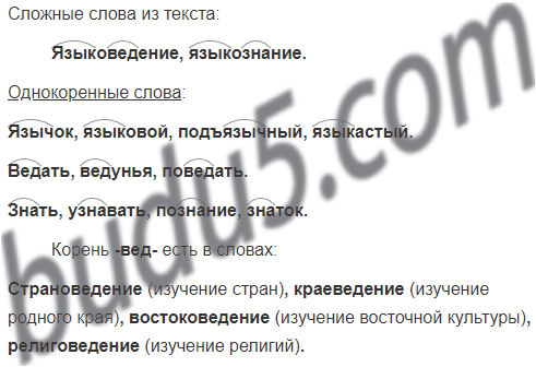 В названиях каких ещё наук есть корень -вед-? Запиши эти слова. (Подсказка: все эти слова – сложные.) Попробуй догадаться по названиям, что изучает каждая из наук.