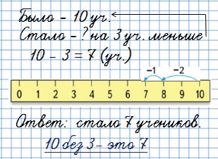 1. Сначала в хор записались 10 учеников первого класса, а потом их стало на 3 меньше. Сколько учеников первого класса теперь в хоре?