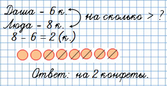 1) На сколько меньше конфет стало у Даши, чем у Люды? На 2 конфеты.