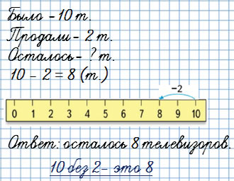 Вопрос 19. В магазине было 10 телевизоров. Сегодня продали 2 телевизора. Сколько телевизоров осталось в магазине?