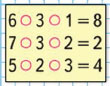 8 + 2 = 10 9 - 2 = 7 5 - 3 = 2 7 - 1 = 6 4 + 2 = 6 6 - 2 = 4