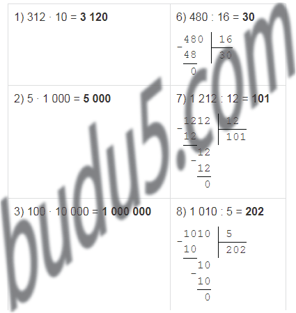 2) 5 ∙ 1 000; 5) 480 : 4; 8) 1 010 : 5;