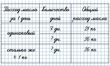 2) 36 : 3 = 12 (дн.) - хватит 36 кг масла при расходе 3 кг масла в день.