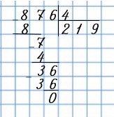 При делении на 9 какого-то числа взяли 36 и в остатке получилось 6. Значит, исходное число 36 + 6 = 42, а в частное запишем 36 : 9 = 4.