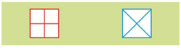 На сколько равных частей разделён каждый квадрат на чертеже? Найди площадь одной доли в каждом квадрате. Сравни площади этих долей.
