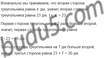 Одна из сторон треугольника в 2 раза больше второй стороны, а вторая на 7 дм меньше третьей. Найдите стороны треугольника, если его периметр равен 99 дм.