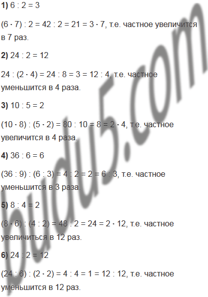 6) делимое уменьшить в 6 раз, а делитель увеличить в 2 раза.