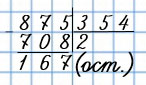 Умножим 354 на 2, получится 708. 875 - 708 = 167, 167 < 354. Значит, частное 2, остаток 167.