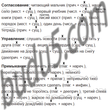 1. Запишите словосочетания, распределяя их в три группы в зависимости от типа подчинительной связи. Укажите, чем выражены главные и зависимые слова.