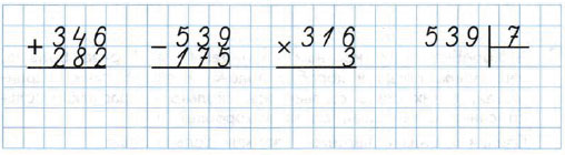 Повтори состав трёхзначного числа, алгоритм письменного сложения, вычитания, умножения и деления трёхзначных чисел, а также как называются числа при сложении, вычитании, умножении и делении.