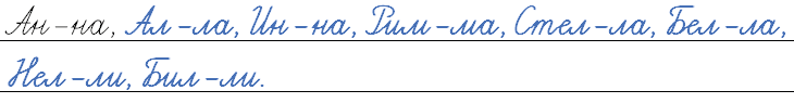 Вспомните имена, в которых есть удвоенные согласные. Запишите эти слова. Разделите их чёрточкой для переноса.