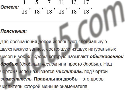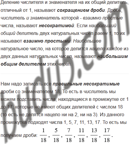 Запишите все правильные несократимые дроби со знаменателем 18.