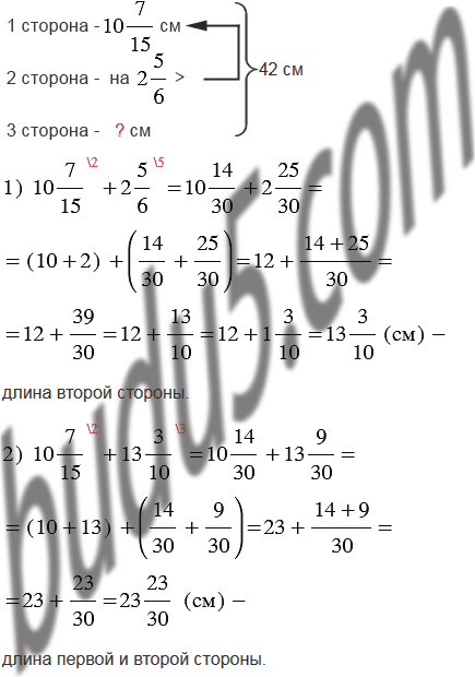 Периметр треугольника равен 42 см, а длина одной из сторон - см, что на см меньше длины второй. Найдите дину третьей стороны треугольника.