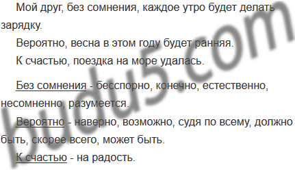 Составьте предложения с вводными словами, выразив уверенность в том, что каждое утро ваш друг будет делать зарядку; предположение о том, что весна в этом году будет ранняя; удовлетворение по поводу поездки к морю. Запишите эти предложения, употребив вводные слова без сомнения, вероятно, к счастью. Какие ещё вводные слова можно употребить в этих предложениях?