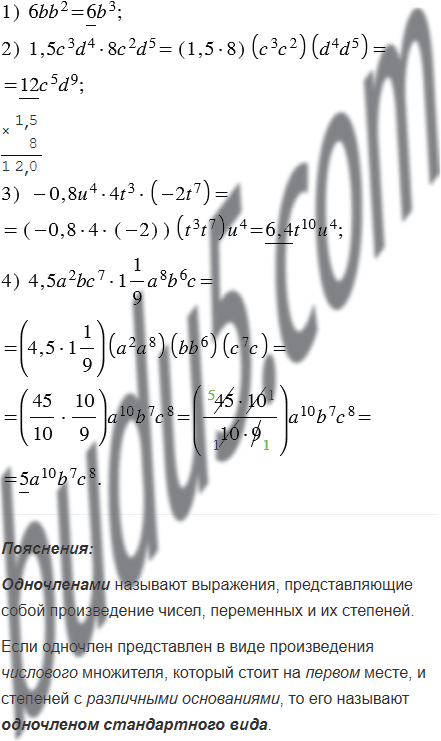 Представьте одночлен в стандартном виде, подчеркните его коэффициент:
