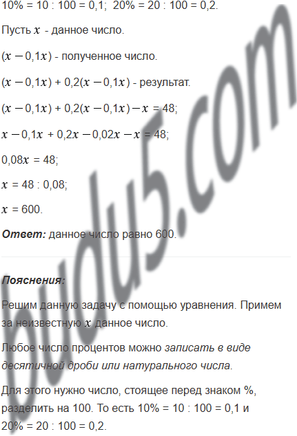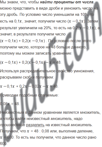 Некоторое число сначала уменьшили на 10%, а потом результат увеличили на 20%. После этого получили число, которое на 48 больше данного. Найдите данное число.