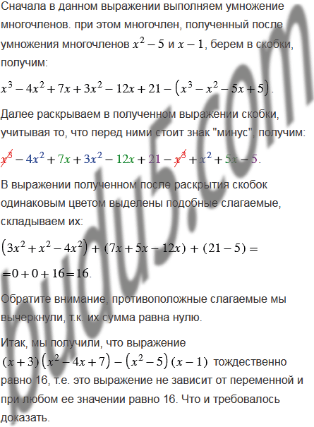 Докажите, что при любом значении переменной значение выражения равно 16.