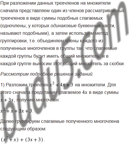 Разложите на множители трехчлен: