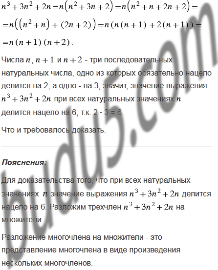 Докажите, что при всех натуральных значениях значение выражения делится нацело на 6.