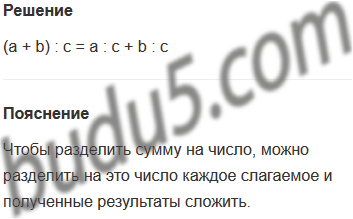 Задание № 1. Как разделить сумму на число? Допиши равенство и приведи числовые примеры: (а + b) : с = ...