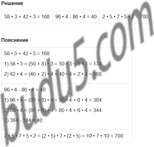 | 58 • 3 + 42 • 3 | 96 • 4 - 86 • 4 | 2 • 5 • 7 • 5 • 2 |