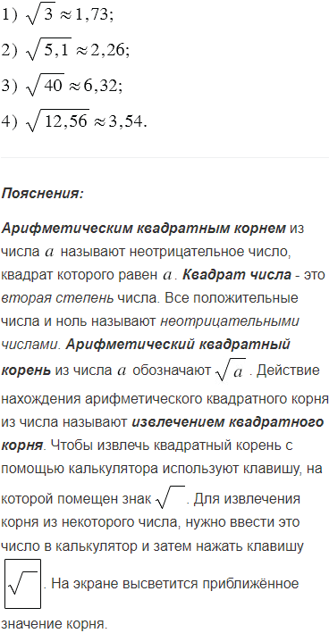 Пользуясь микрокалькулятором, найдите значение квадратного корня (результат округлите до сотых):