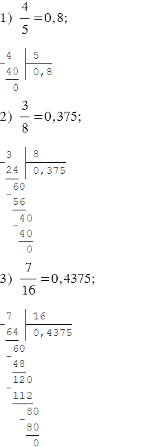 Чтобы преобразовать обыкновенную дробь в десятичную, можно ее числитель разделить на знаменатель.