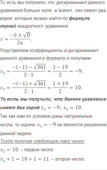 Произведение двух последовательных натуральных чисел на 89 больше их суммы. Найдите эти числа.
