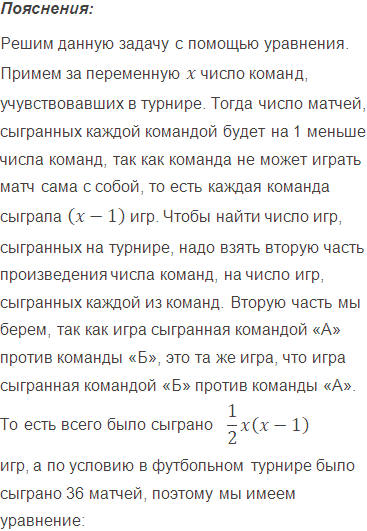 В футбольном турнире было сыграно 36 матчей. Сколько команд участвовало в турнире, если каждая команда сыграла по одному разу с каждой из остальных команд?