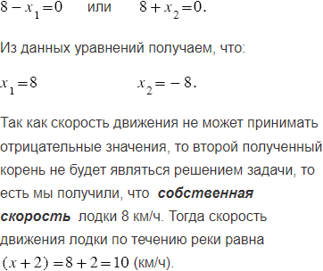 Лодка проплыла 15 км по течению реки и вернулась, затратив на обратный путь на 1 ч больше. Найдите скорость лодки по течению реки, если скорость течения составляет 2 км/ч.