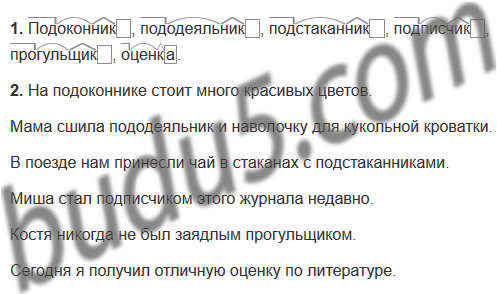 Подоконник, пододеяльник, подстаканник, подписчик, прогульщик, оценка.