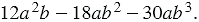 В нашем многочлене модули коэффициентов равны 12, 18 и 30, а их наибольший общий делитель 6, поэтому коэффициент общего множителя будет равен или 6 или