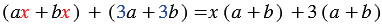 , вторая группа слагаемых имеет общий множитель 3. Вынесем каждый из этих множителей, в соответствующей им группе слагаемых, за скобки: